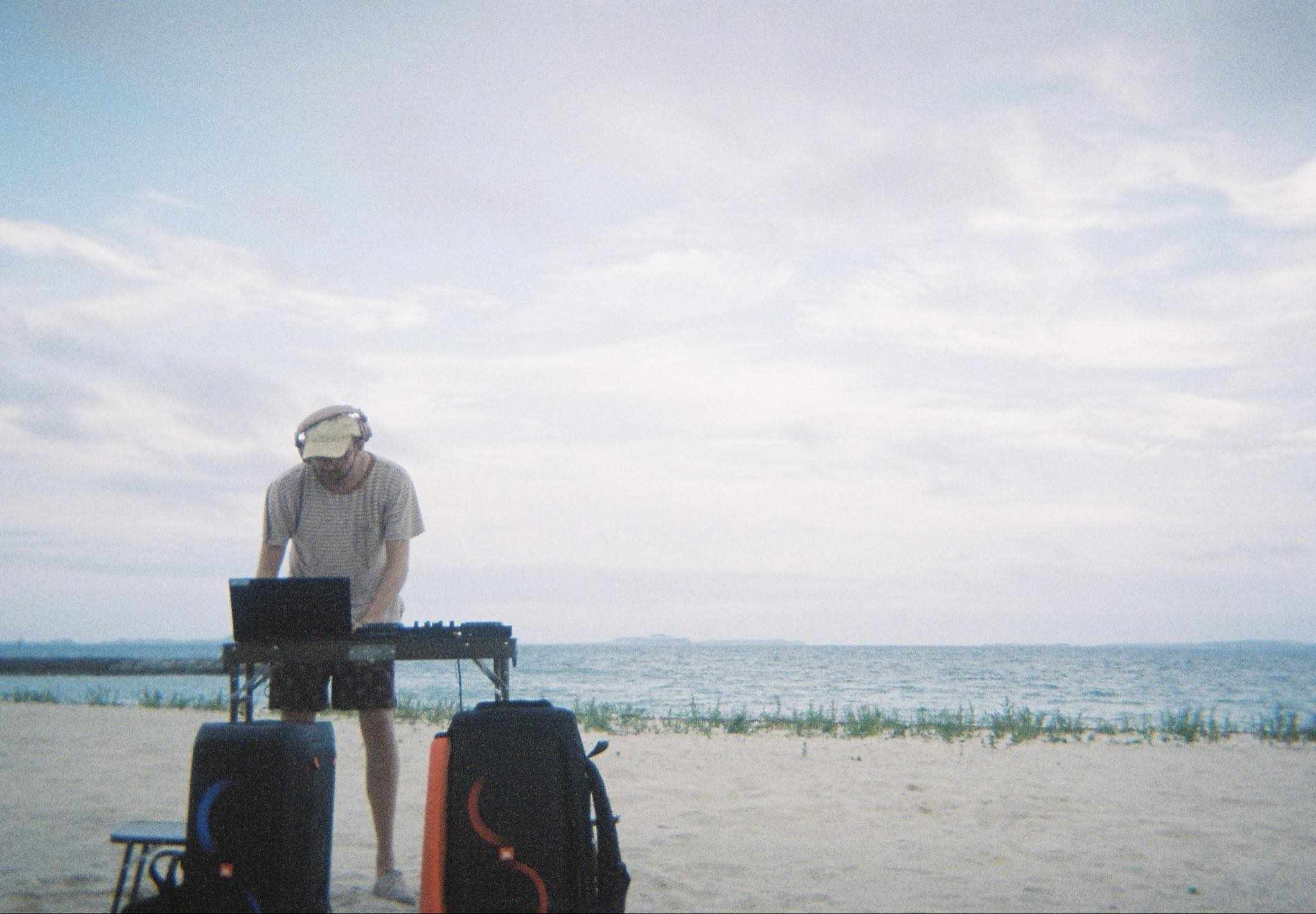Dr. Ross DJs on a beach in Okinawa